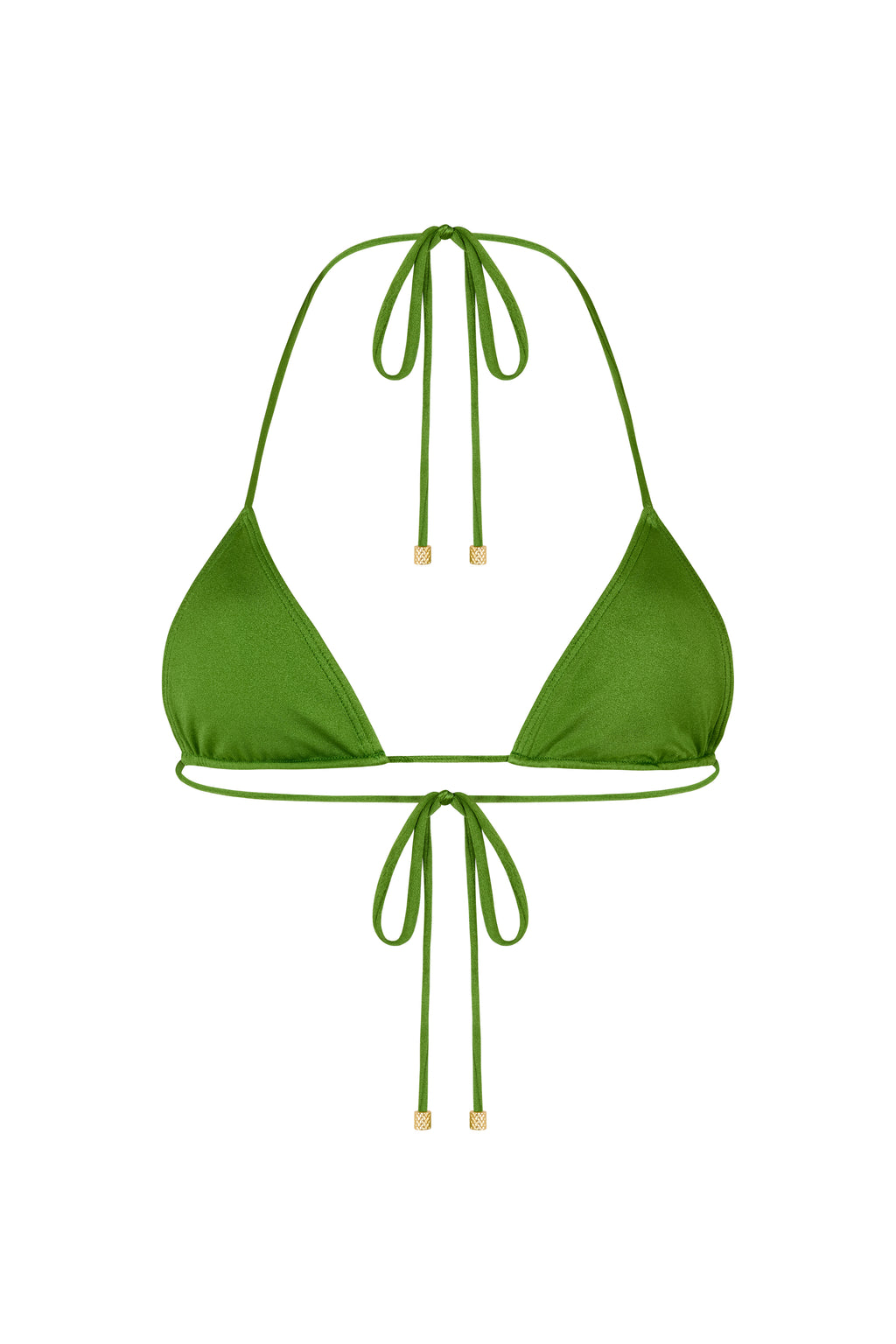 The Stella in Cactus by Sommer Swim is a mini halter style triangle bikini top featuring simplistic coverage and adjustable neck and back tie.